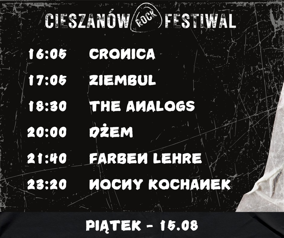 Poniżej terminy spotkań z zespołami opublikowane przez organizatorów Cieszanów Rock Festiwalu do dnia 12 sierpnia.