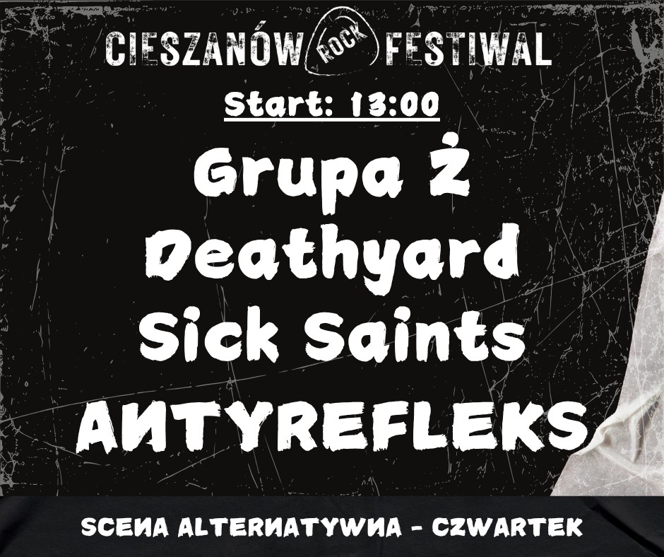 Już jutro zacznie się kolejna edycja Cieszanów Rock Festiwalu. Znów w naszym mieście zabrzmią piękne rockowe nuty znanych zespołów. Obecna edycja to 18 muzycznych składów na dużej scenie, 12 na scenie alternatywnej oraz nocne koncerty w cerkwi. Każdy dzień to muzyczna uczta dla miłośników rockowej muzyki. Tegoroczny zestaw oferuje całkiem niezłą muzyczną różnorodność. Część ze składów już w Cieszanowie widzieliśmy części jeszcze nie. Można by wiele dyskutować o tym którego dnia posłuchamy lepszego zestawu ale nie o to chodzi. Festiwal to możliwość obejrzenia wielu różnych rockowych koncepcji.