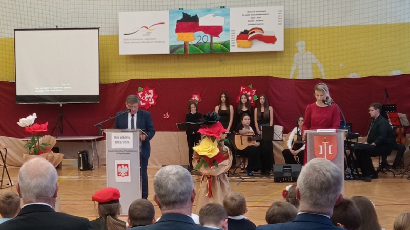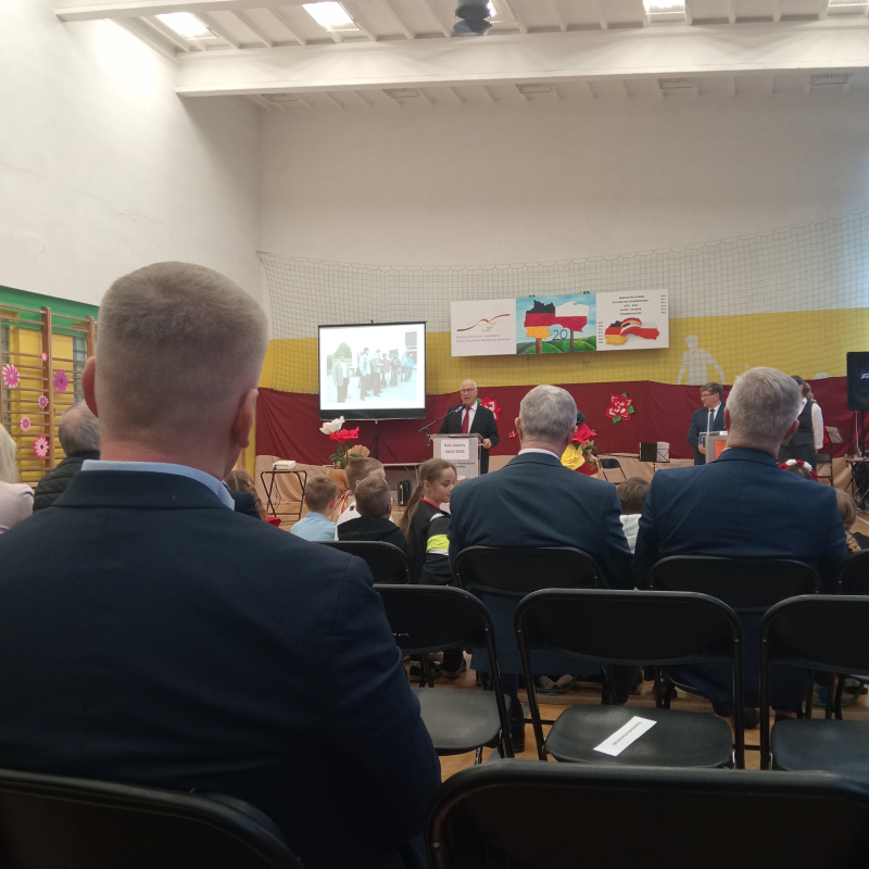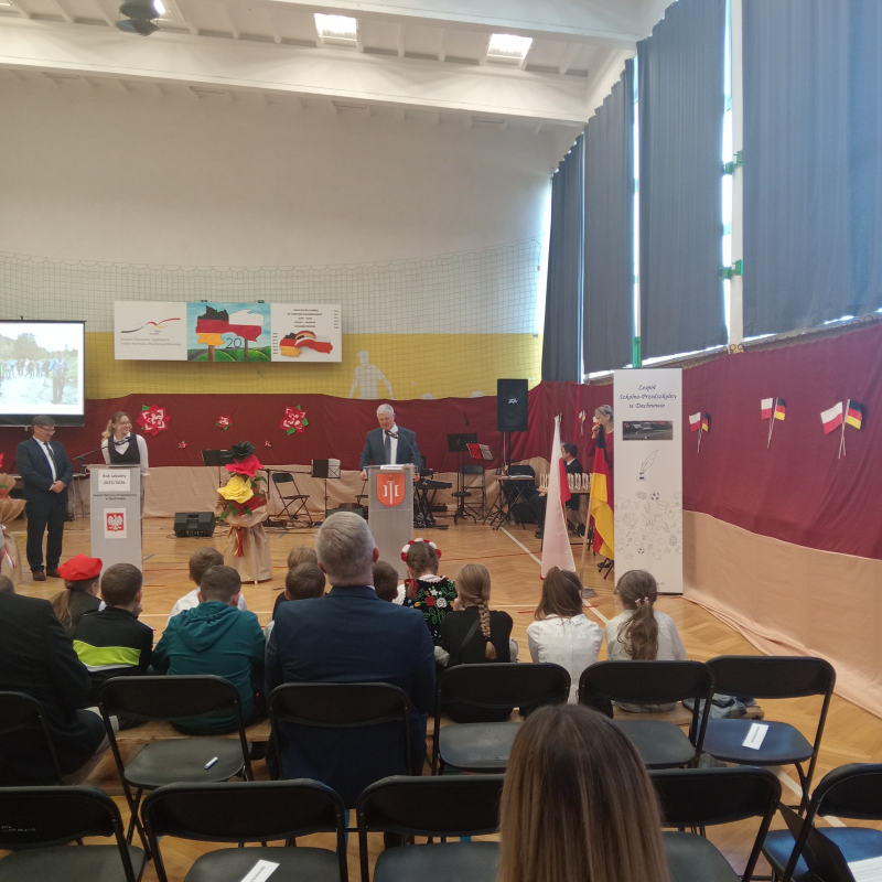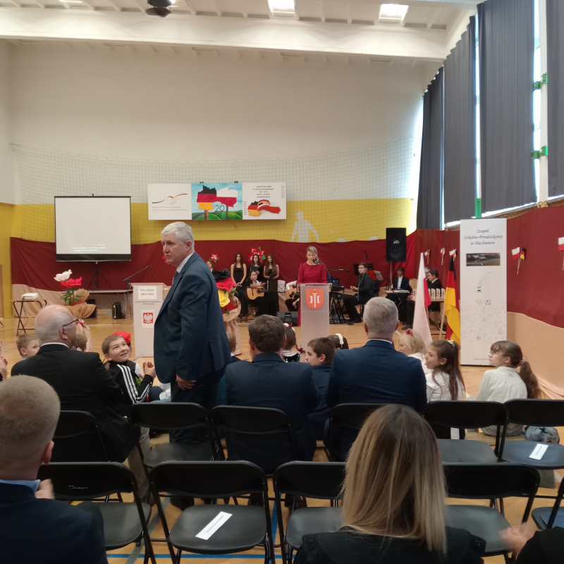 Kolejna część obchodów 20 lecia współpracy odbyła się w szkole w Dachnowie. To ZSP z Dachnowa przez te lata stałe współpracował ze szkołą z Argenbühl prowadząc wspólne wymiany młodzieży. Dyrektor szkoły w Dachnowie, nauczyciele, dzieci i ich rodzice przygotowali wspólną uroczystość. Przypomniano wspólne realizacje polsko-niemieckie i wspólne przedsięwzięcia. Również tam podziękowano gościom z partnerskiej gminy z Niemiec za ich zaangażowanie. Warto wspomnieć za dyrektorem dachnowskiej szkoły, Ryszardem Szczudło, że przez te lata współpracy ponad 500 uczniów miało okazję odwiedzić gminę i szkołę w Argenbühl oraz spotykać się na wspólnych zajęciach z niemieckimi rówieśnikami.